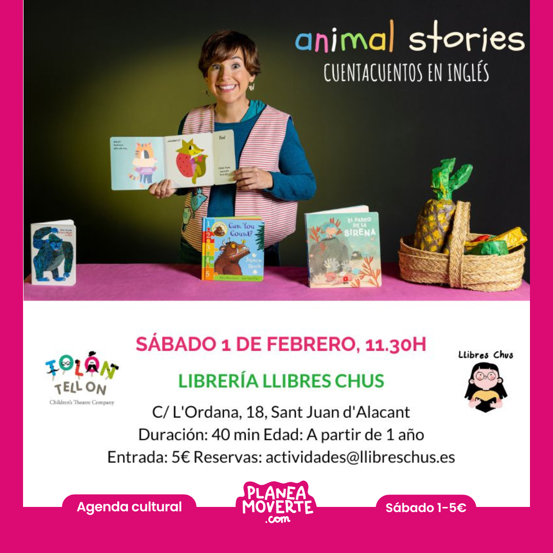 Cuentacuentos en inglés para peques. Una sesión de cuentos y canciones en la que daremos vida a animales del mar, la jungla, el bosque y la granja. Os esperamos llenos de historias y canciones y.... en inglés!!! Recomendado a partir de 1 años.Horario: 11:00hrs