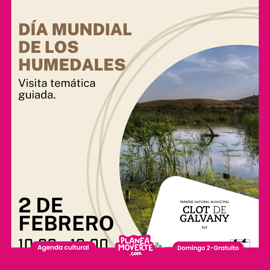 Visita temática guiada: “Ruta del agua en el P.N.M. del Clot de Galvany”. Destinada a conocer el ciclo natural del agua en el paraje y la intervención humana en el mismo dentro del Plan de Gestión del paraje, para asegurar la permanencia del humedal. Ocasión para conocer los distintos caminos que toma el agua para llegar al humedal, el papel que juega el ser humano en el proceso y en concreto en el paraje y como se presenta el agua en el humedal. Así mismo, durante la ruta los participantes podrán aprender a identificar las especies de fauna más comunes en los humedales ilicitanos, analizar su importancia en el mantenimiento de los procesos ecológicos esenciales y conocer las labores de gestión que realizamos en el Clot para su seguimiento y estudio.