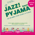 ¿Buscas plan para tus días sin cole? Jazz! Pyjama Days – Acto 1 está aquí… y empieza en pijama! Del 22 al 25 de abril los peques van a vivir una experiencia única de música, creatividad e inmersión natural en inglés… ¡todo en pijama! Música en vivo y juegos rítmicos. Manualidades creativas (incluyendo instrumentos que podrán llevarse a casa). Historia del arte y expresión artística. Actividades sensoriales y de relajación. Jazz, diversión y mucho swing en un espacio especializado en música para niños. Recomendado de 3 a 9 años.Precio: 20€ días sueltos. 65€ todos los días. Inscripciones aquí