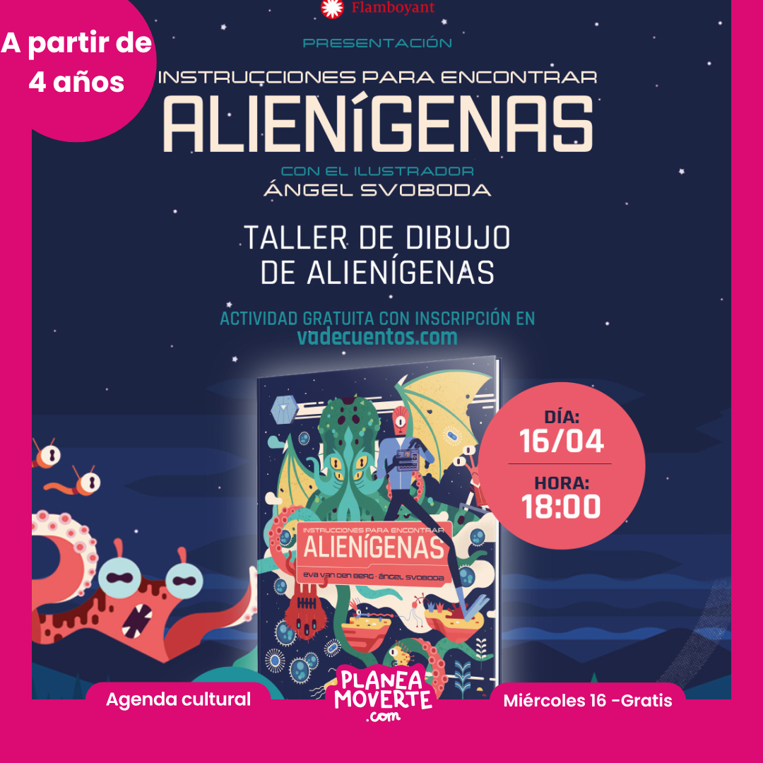 ¿Y si los alienígenas ya estuvieran entre nosotros? 🛸 En este taller gratuito, el ilustrador Ángel Svoboda nos enseñará a imaginar y dibujar nuestras propias criaturas de otros mundos. Además, presentaremos su libro «Instrucciones para encontrar alienígenas», una guía imprescindible para detectar seres de otros planetas. Recomendado a partir de 4 años