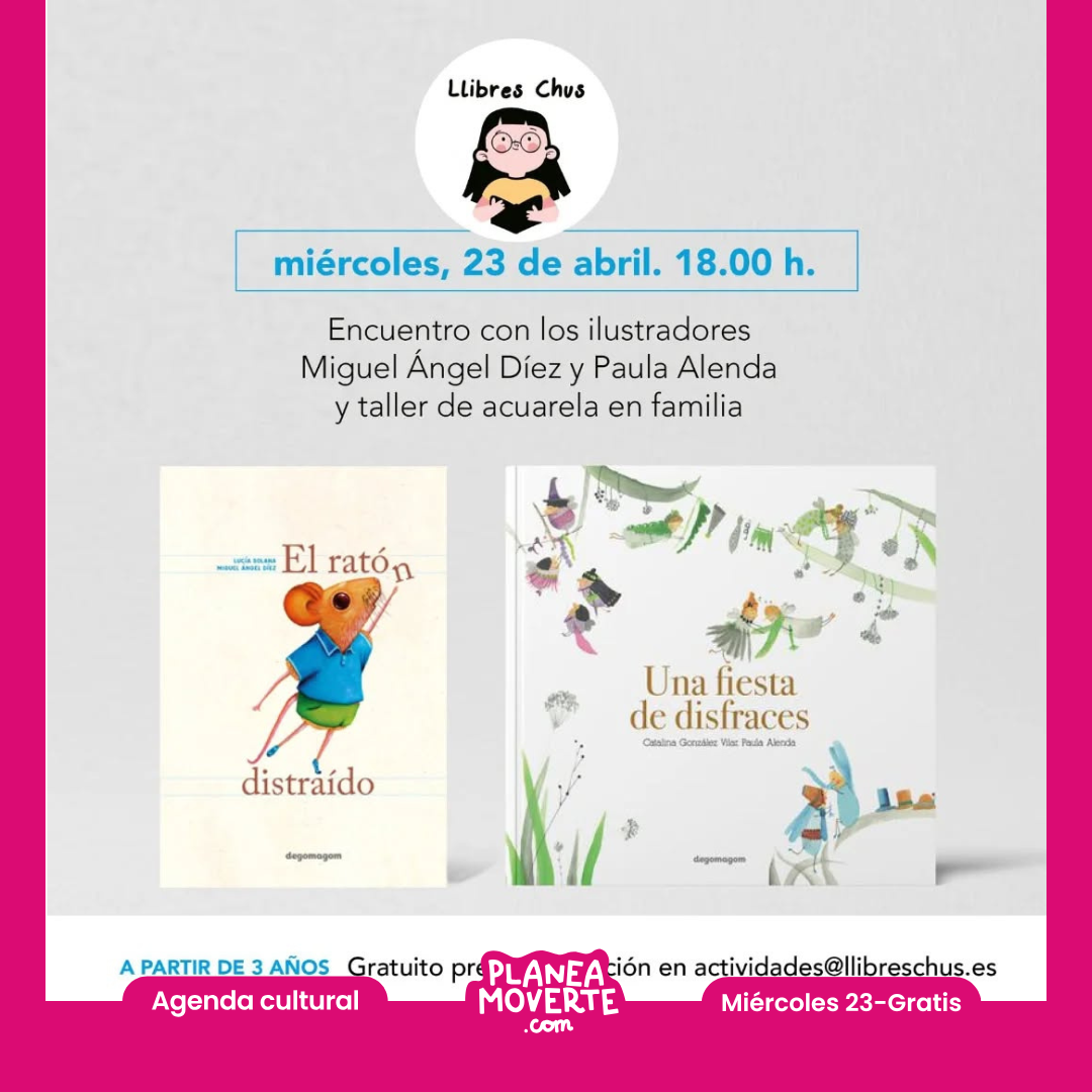 El día más bonito se celebra en @llibreschus con un taller que es puro color. En el día del libro os invitamos a un taller familiar en la librería. Tendremos a los ilustradores Paula Alenda y Miguel Ángel Díez. Nos contarán cómo ilustran y conoceremos sus obras. Haremos un taller con mucho juego. Paula y Miguel Ángel firmarán los ejemplares que queráis. Recomendado a partir de 3 años. Horario: 18:00hrs