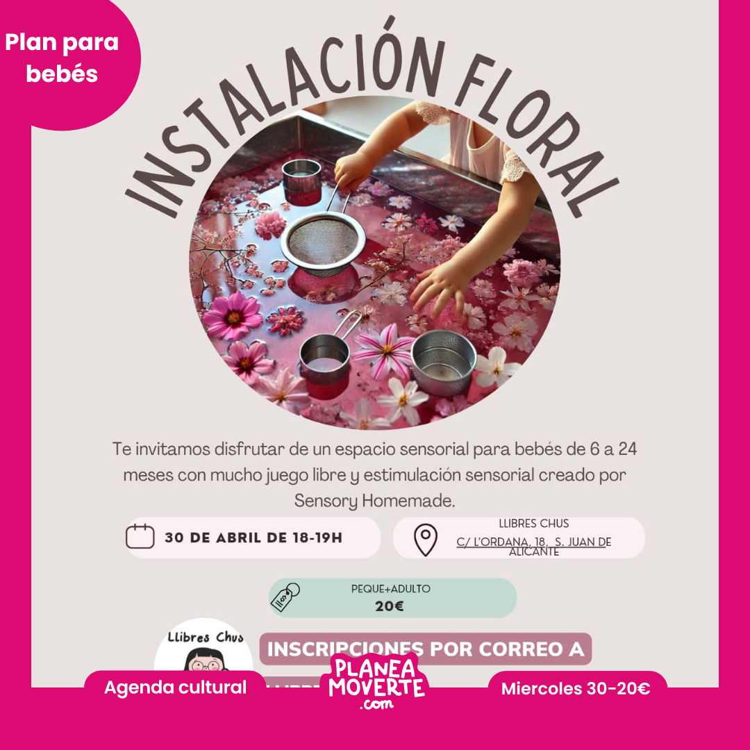 Instalación Floral. Espacio sensorial para bebés. Te invitamos a disfrutar de un espacio sensorial para bebés de