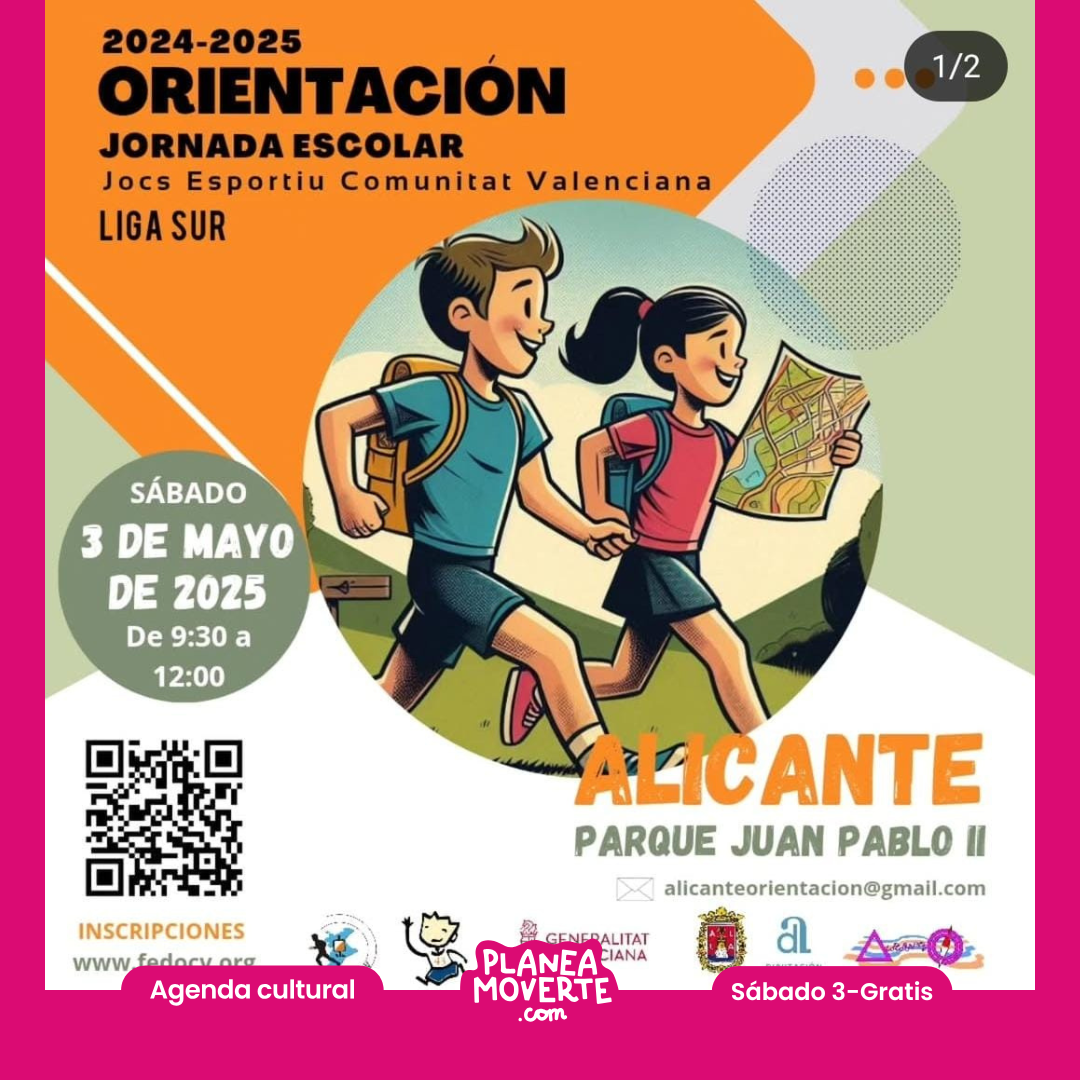 El próximo sábado 3 de mayo de 2025 tendrá lugar la 8ª jornada de la Liga Escolar Zona Sur de Orientación a Pie, en el Parque Juan Pablo II de Alicante. Es totalmente gratuito. Es un deporte para todas las edades y haremos juegos de orientación. No se trata de un evento cerrado, si tienes curiosidad por este deporte y quieres probar ¡apúntate! Fecha límite de inscripción: jueves 1 de mayo a las 14h.Precio: Gratuito con inscripción aquí