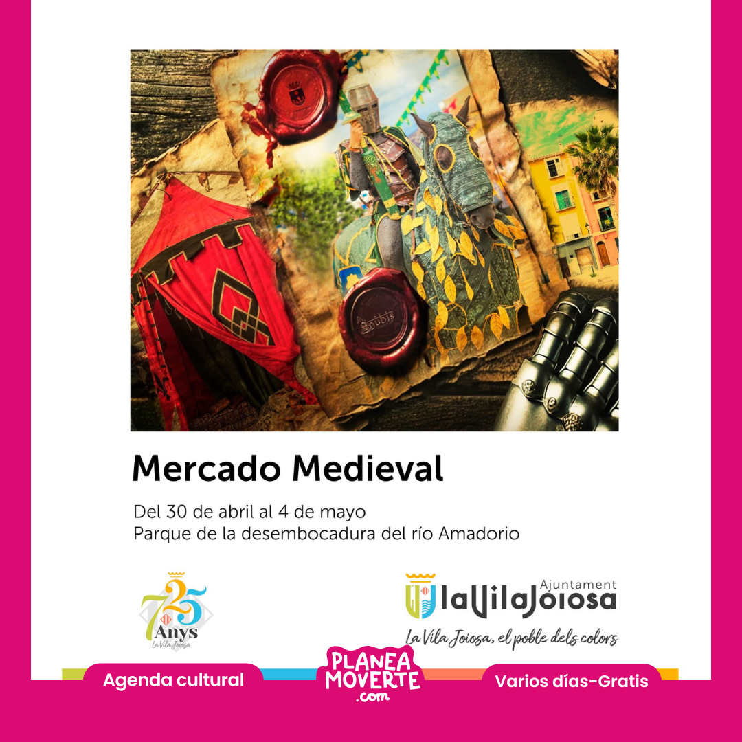 Del 30 de abril al 4 de mayo podremos disfrutar en Villajoyosa del Mercado Medieval. Artesanía, gastronomía, espectáculos musicales, actuaciones teatrales, torneo de caballos y ludoteca infantil nos transportarán a la Edad Media hasta el domingo 4 de mayo. A las 19.30 horas, se celebrará el desfile inaugural. Aquí podéis ver la programación.