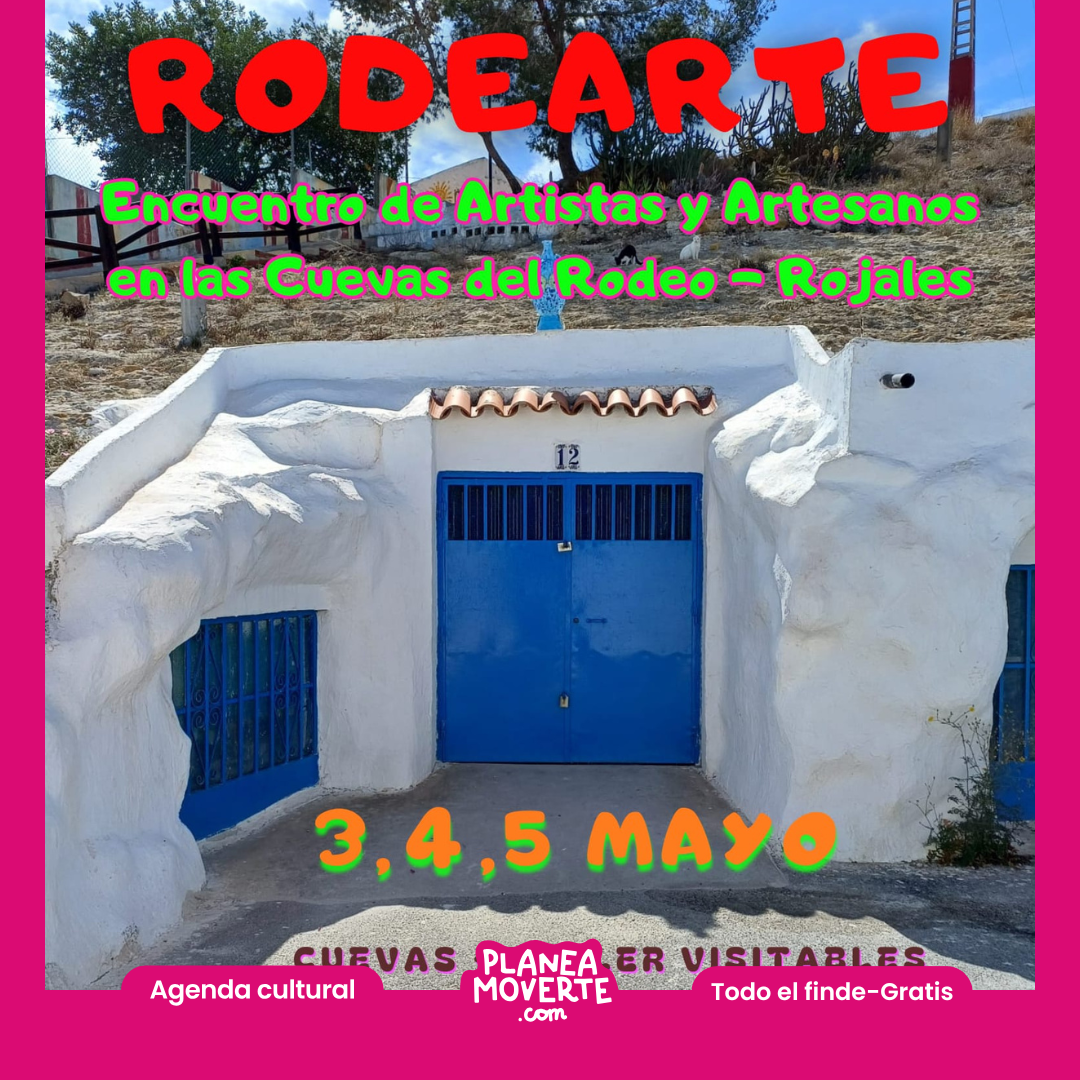 RODEARTE de MAYO, tres días de actividades culturales, talleres infantiles, pintura, músicas de diferentes estilos, naturaleza, y otras actividades. Cuevas del RODEO de Rojales, un lugar mágico, donde podrás compartir con la familia, amigos y gente venida de otros lugares, de la paz del ambiente y del encuentro de culturas. Este sábado a las 20hrs el teatro "Los Colores de Zoe" de Pampol Teatre.