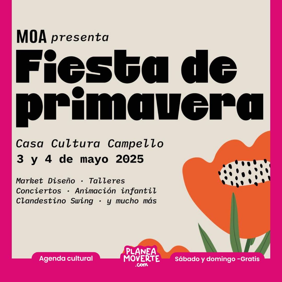 Por segundo año consecutivo, El Campello se llena de color y talento con esta jornada cultural abierta a todo el mundo. Durante dos días podrás disfrutar de lo mejor del arte plástico, la música, la gastronomía y el diseño en un evento que reúne a artistas y creadores de la zona de Levante. ¿Qué te espera? Un market de diseño con 12 stands, talleres creativos, espectáculos en directo, actividades para peques, música en vivo y un ambiente primaveral irresistible.Programación sábado 4 de mayo: