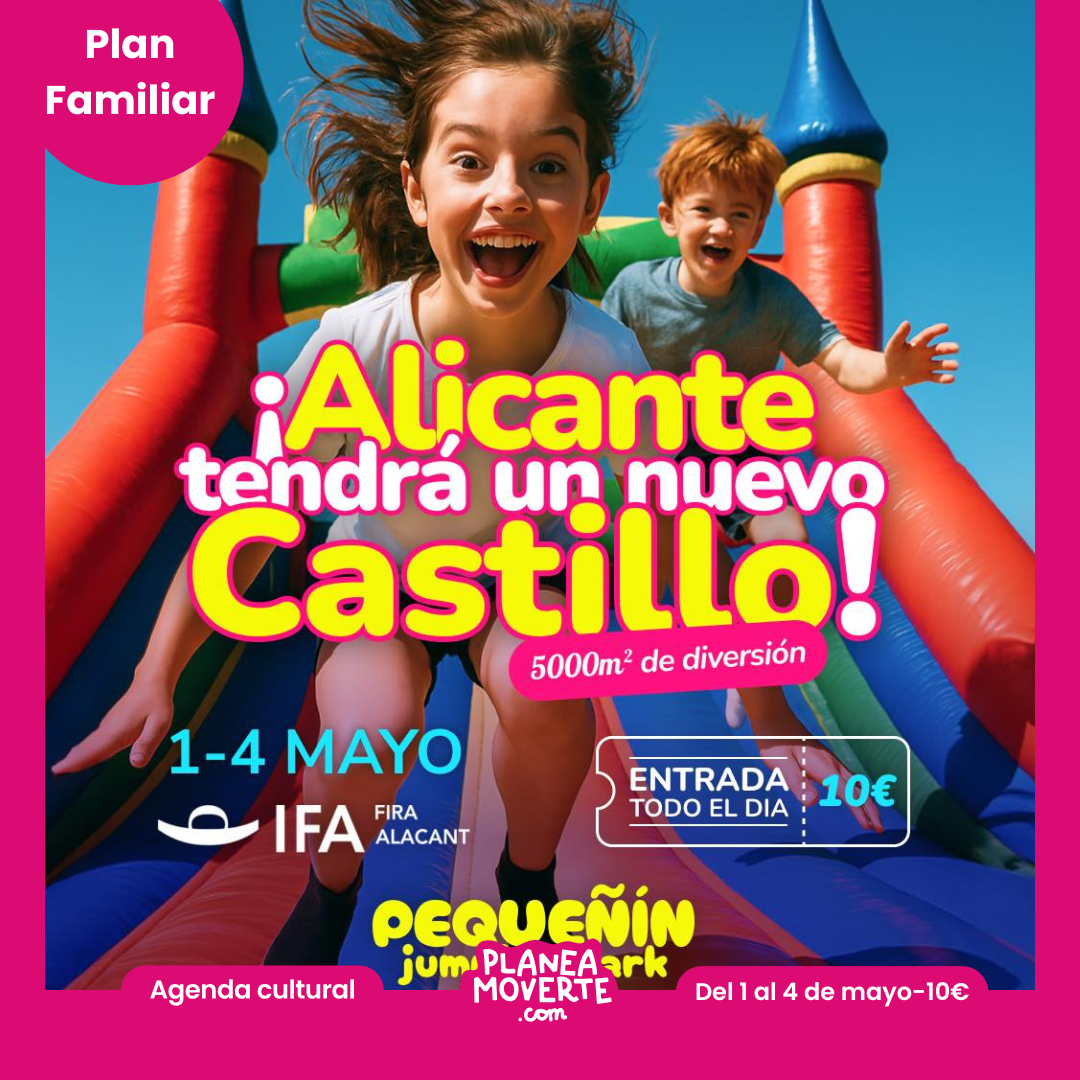 Del 1 al 4 de mayo podemos disfrutar de Pequeñin Jumping Park en el recinto ferial de Alicante. Los hinchables son para todas edades y la idea del evento es que grandes y pequeños disfruten juntos y no que sea llevar a los peques a saltar !!!