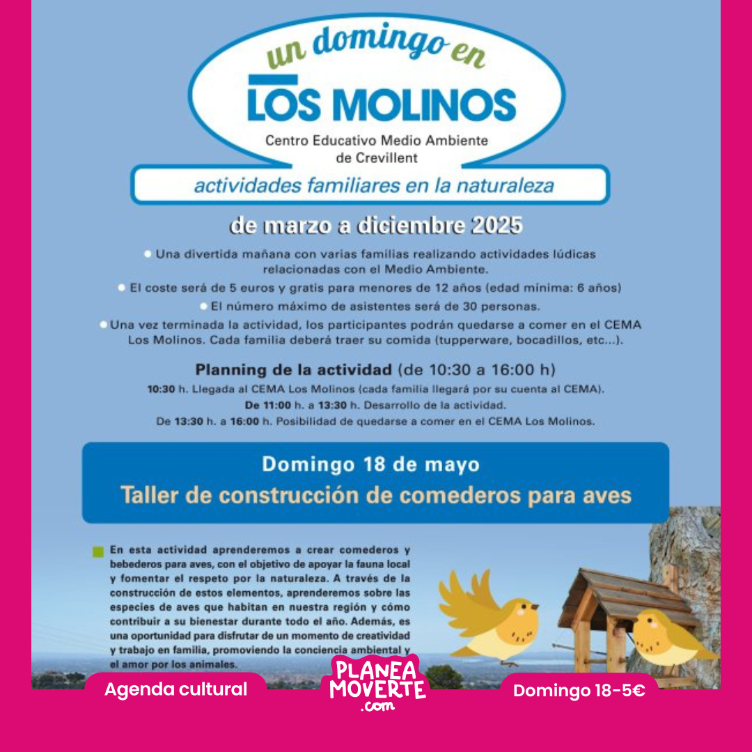 10:00 a 14:00h: Taller “El ave de Lucentum”. Público en general. Jardines del MARQ. No es necesaria inscripción previa.