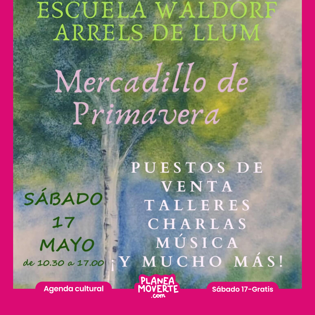 El próximo sábado 17 de mayo de 2025, de 10:30 a 17:00, abrimos las puertas de nuestra escuela para celebrar una jornada muy especial: nuestro Mercadillo de Primavera. ¿Qué encontrarás? Charlas pedagógicas, música en directo, puestos de venta con materiales y creaciones inspirados en nuestra pedagogía, cafetería casera, paella de aperitivo y hamburguesas, talleres para todas las edades: telas de acrobacia, pintacaras, taller de madera… ¡y muchas sorpresas más!