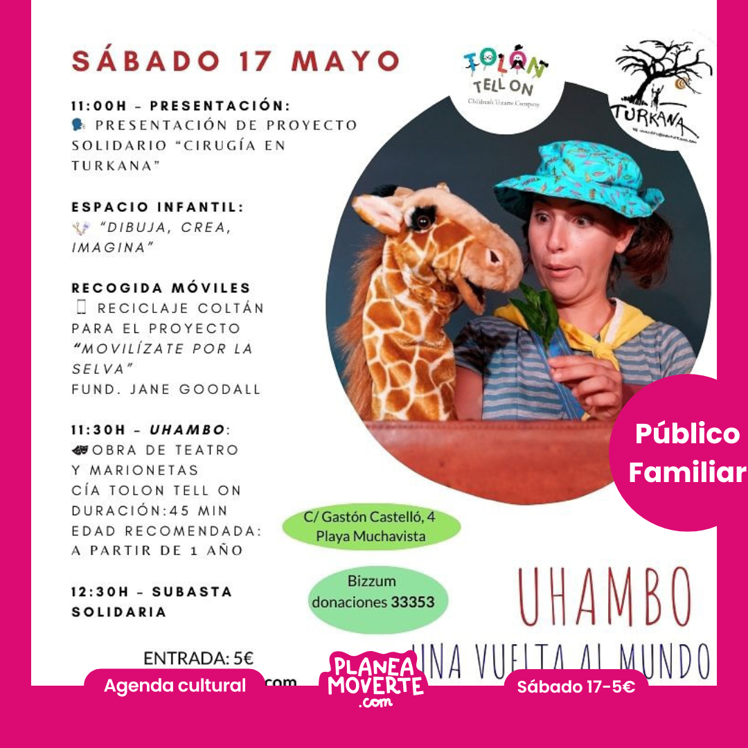 EVENTO SOLIDARIO a favor de Cirugía en Turkana. Como siempre habrá muchas actividades, pero destacamos la obra de teatro Uhambo. Uhambo es un viaje por el mundo repleto de aventuras, animales. colores y músicas de múltiples culturas. Podéis ver toda la programación aquí. Edad recomendada: 1 – 9 años y acompañantes.