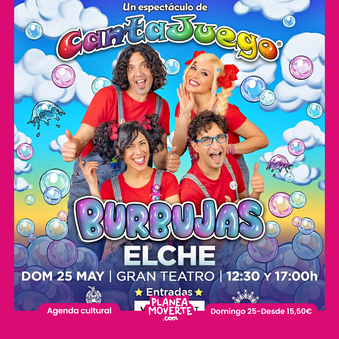 Sumérgete en el mundo de Burbujas, el último espectáculo de CantaJuego, donde música, juego y emociones se entrelazan en una experiencia inolvidable. En esta aventura, los icónicos personajes de CantaJuego, incluidos Coco, Pepe, Buby y el Pajarito, te invitan a un viaje lleno de risas, humor y cariño. Prepárate para un torbellino de emociones cuando el simple pero mágico momento de hacer burbujas se convierte en una fuente de desorden y diversión. Cada CantaJuego quiere hacer burbujas a su manera, llevando a todos a explorar la importancia de reconocer y gestionar sus emociones. Recomendado a partir de 12 meses.
