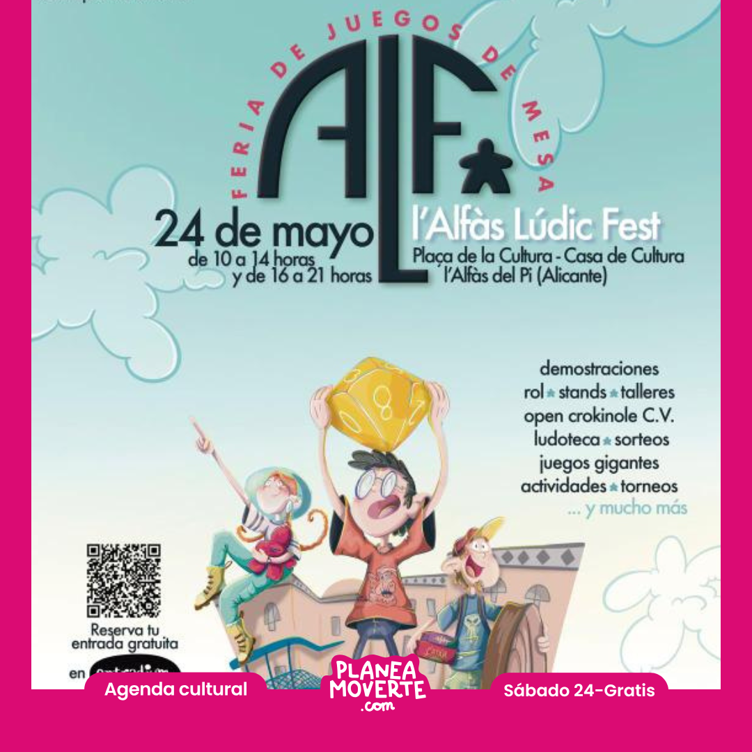 La Concejalía de Juventud de l'Alfàs y la Asociación de juegos de mesa Dragón presentan la segunda edición de l'Alfàs Lúdic Fest. Ven a disfrutar con familia y amigos de los juegos de mesa y de todas las actividades, talleres, demostraciones y premios que te esperan en esta gran feria. No necesitas saberte las reglas: ¡Te explicarán todos los juegos!
