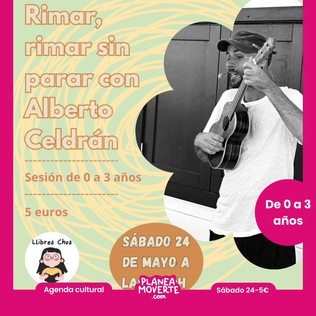 Sesión para bebés. Pequeños cuentos y canciones para disfrutar con los pequeñines de la casa, y gozar en familia del poder de la rima, la música y la palabra. A cargo de : Alberto Celdrán. Recomendado de 0 a 3 años.Horario: 10:30hrs