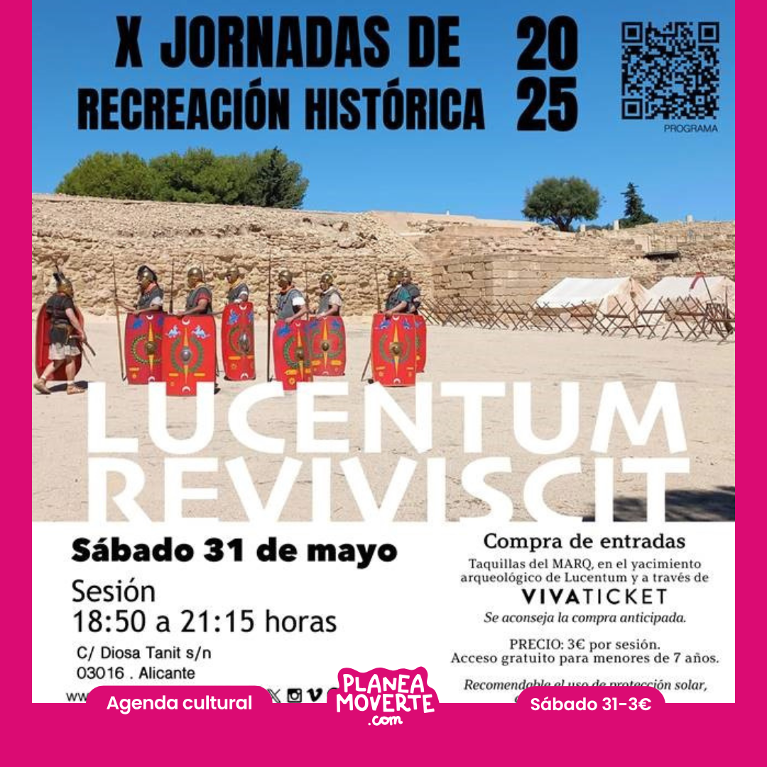 En estas X Jornadas de Recreación Histórica de Lucentum, este año en el marco de la exposición CIUDADES DE LUZ, el MARQ nos aproximará a la vida en el mundo romano hace 2000 años. Nos acercaremos a distintos aspectos de la cotidianidad de nuestros antepasados en la ciudad romana emplazada en la Albufereta de Alicante de la mano de las Asociaciones Hispania Romana y Legio Prima, especialistas en recreación de esta apasionante época de nuestra Historia. Asistiremos a escenas que mostrarán las diferentes clases sociales, actividades artesanales, el guerrero íbero y púnico, la lucha de gladiadores, una gran procesión (Pompa); así como las tácticas y las actividades diarias en un campamento militar.