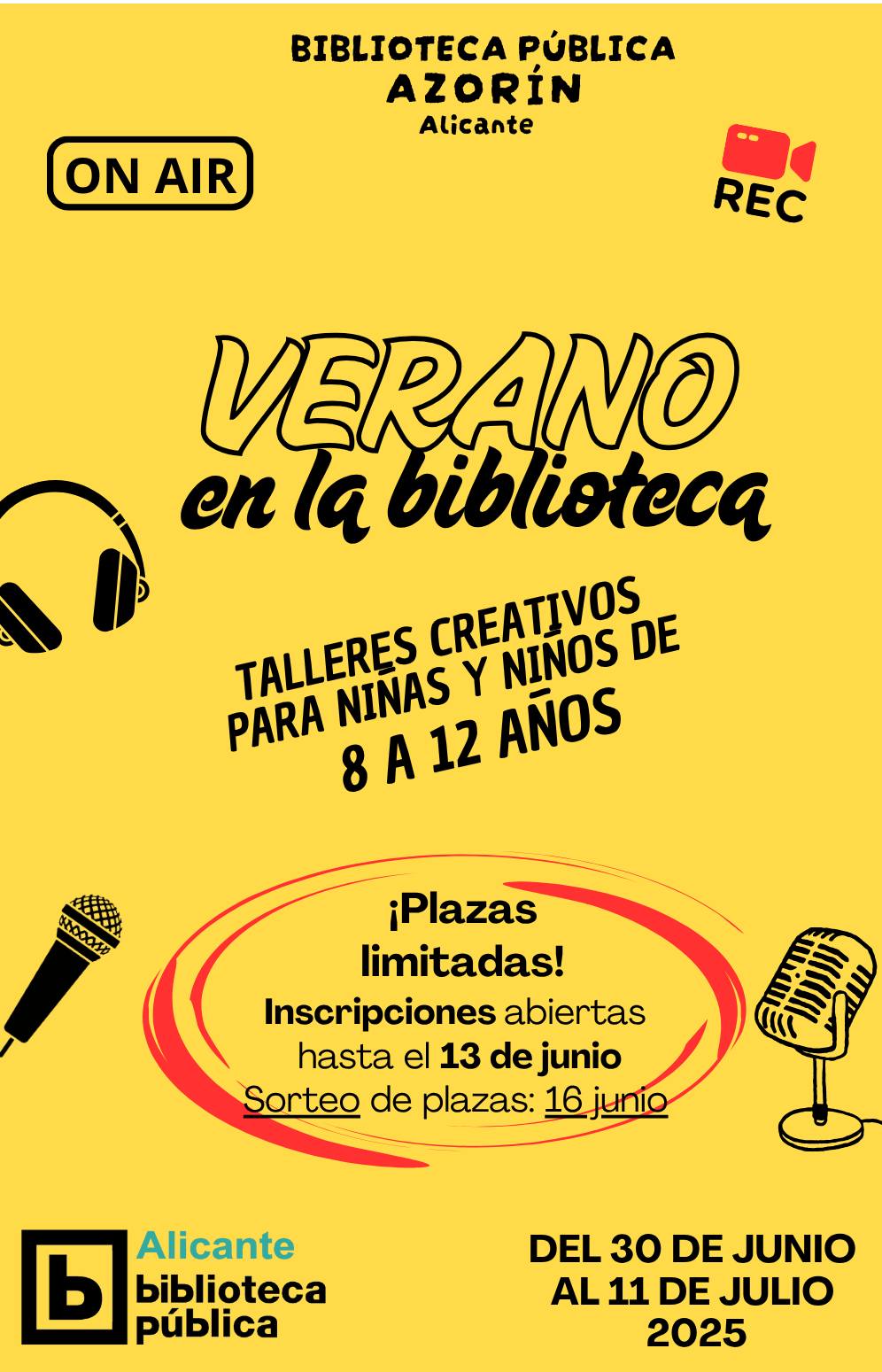 El verano ya está aquí y las actividades infantiles de la biblioteca publica azorin no paran. Si tienes entre 8 y 12 años y todavía no tienes claro qué vas a hacer en las mañanas de julio, desde la biblioteca te proponemos un par de semanas de diversión y entretenimiento. Del 30 de junio al 11 de julio, en horario de 10.00 a 12.00 h. ven a pasarlo genial con nuestros talleres de iniciación al mundo audiovisual y al mundo de la radio a través de los podcast.Escuela de Verano de Música "La Nave"