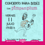Concierto para bebés con Pimpamplum. El viernes 5 Marcos dará su concierto especialmente preparado para los más pequeñitos, de 0 a 3 años. Será en nuestro patioHorario: 19:00hrs