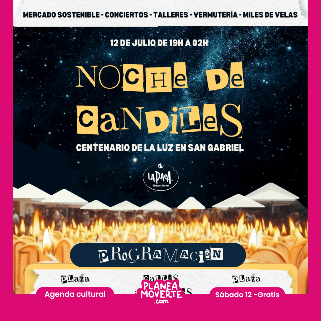 Prepara tus sentidos para una noche mágica e inolvidable en San Gabriel! El sábado 12 de julio, desde las 19:00h hasta las 02:00h de la madrugada, celebraremos juntos el "Centenario de la Luz" con nuestra esperada Noche de Candiles. Una velada única donde la tradición y la cultura se encuentran bajo el suave resplandor de miles de velas.