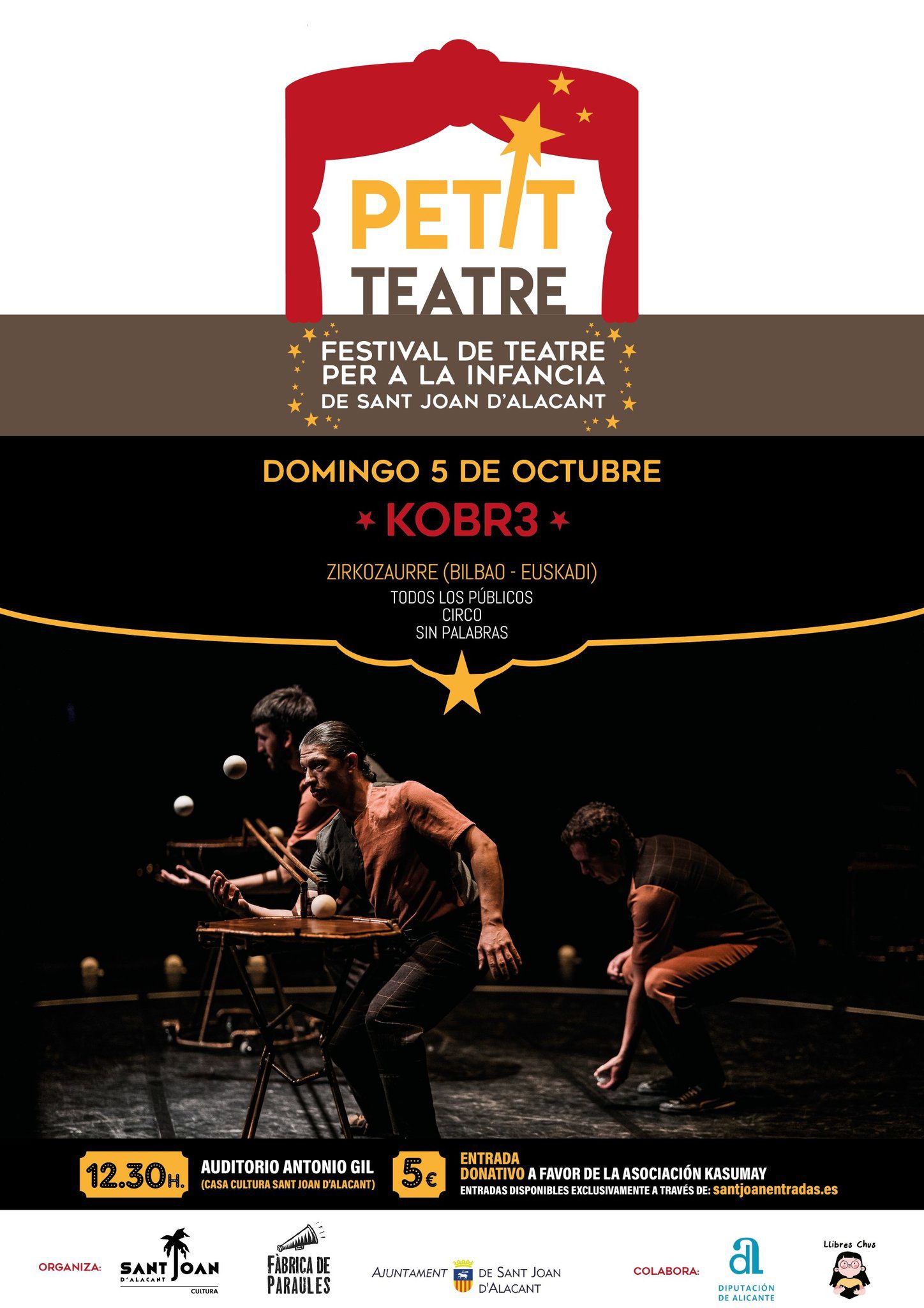 Teatro infantil en alicante este fin de semanaComienza el Petit Teatre y su maravillosa programación! ‘Kobr3’ gira y hace girar a los espectadores en torno al cobre. Sobre el escenario, tres artistas combinan técnicas de malabares, manipulación de objetos, rueda Cyr, bola contact y movimientos acompasados. Estética, plasticidad. Complicidad, armonía. Circo contemporáneo en cuidadas y sincronizadas coreografías. Partes y más partes de un todo cocinado a fuego lento y que se paladea con placentera celeridad. Recomendado para todos los públicos.