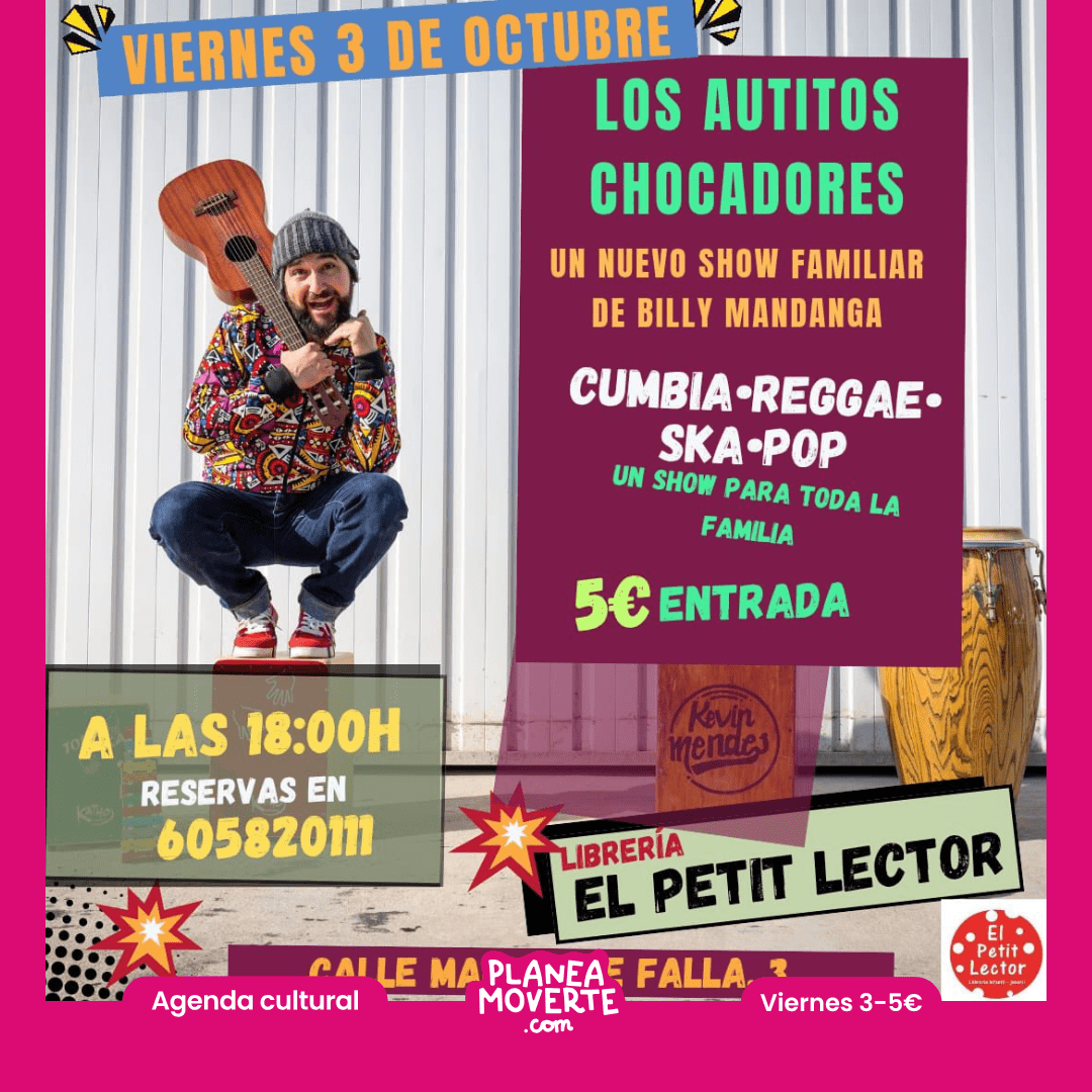 qué hacer con niños este fin de semana en alicanteCon-cier-tazo familiar! Los autitos chocadores. Concierto familiar infantil. Os invitamos a un maravilloso show lleno de música, fiesta y baile para disfrutar en familia que no os podeís perder !! A cargo de : Billy Mandanga