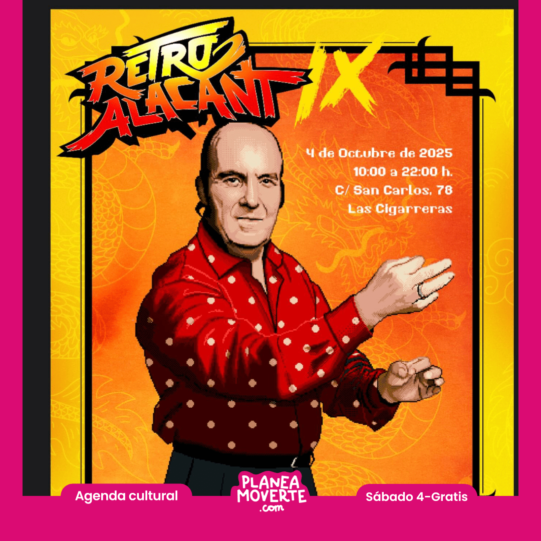 Los mejores planes en alicante este fin de semanaLa novena edición de Retroalacant se celebrará el 4 de octubre. Retroalacant ofrece una jornada dedicada al ocio y a diversos temas, incluyendo: Torneos, Zona de expositores, Zona de animación, Videojuegos por alimentos y Música de antaño.