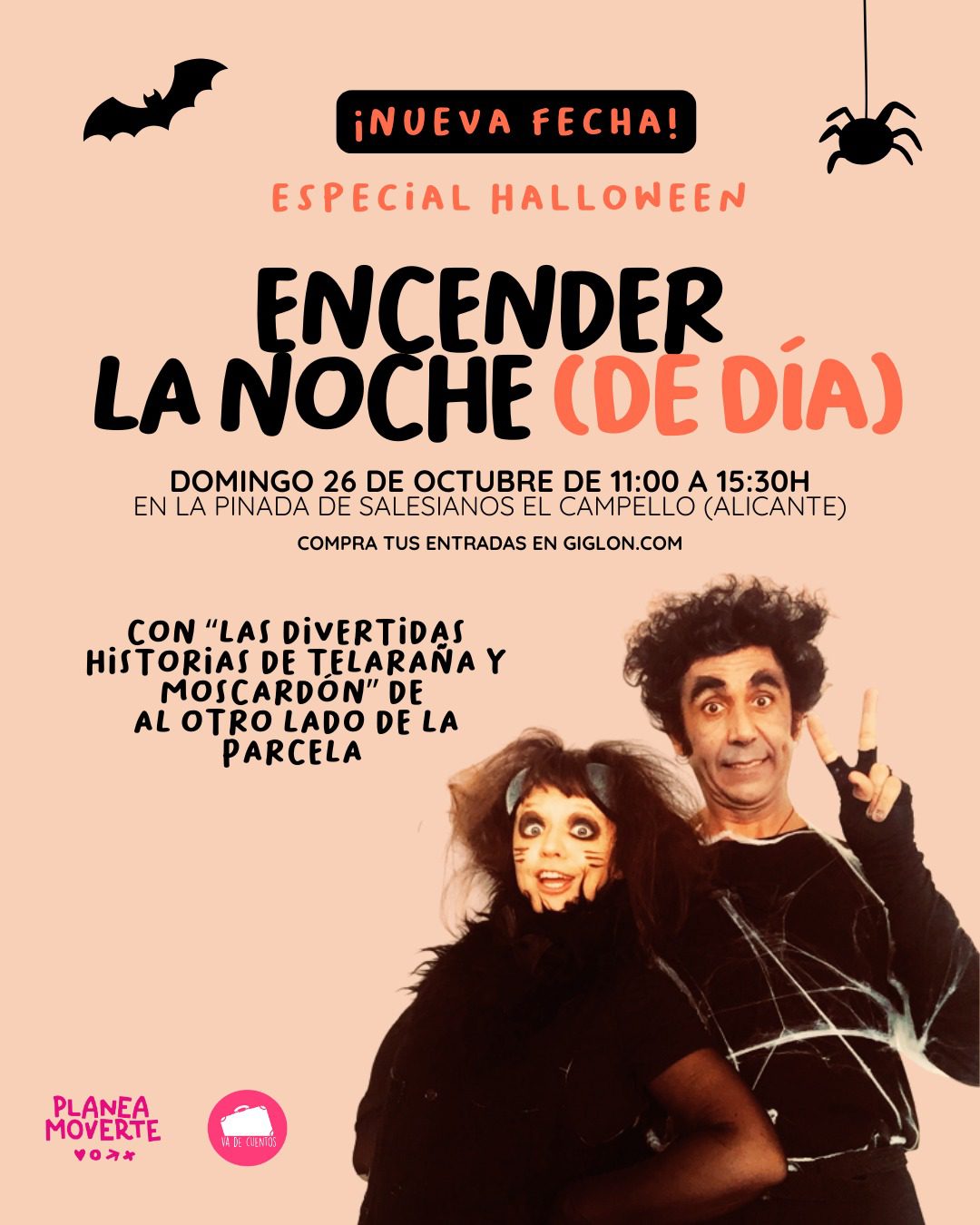 Planes de halloween con niños en alicanteExitazo y aforo completo para nuestro especial Halloween del día 25 de octubre, así que abrimos nueva fecha para disfrutar de una mañana en calma con toda la magia de esta fiesta. Habrá juegos, pintacaras y un super espectáculo a cargo de Al Otro Lado de la Parecla que no os podéis perder! Ven con tu pic nic y tu disfraz y no te pierdas este eventazo!