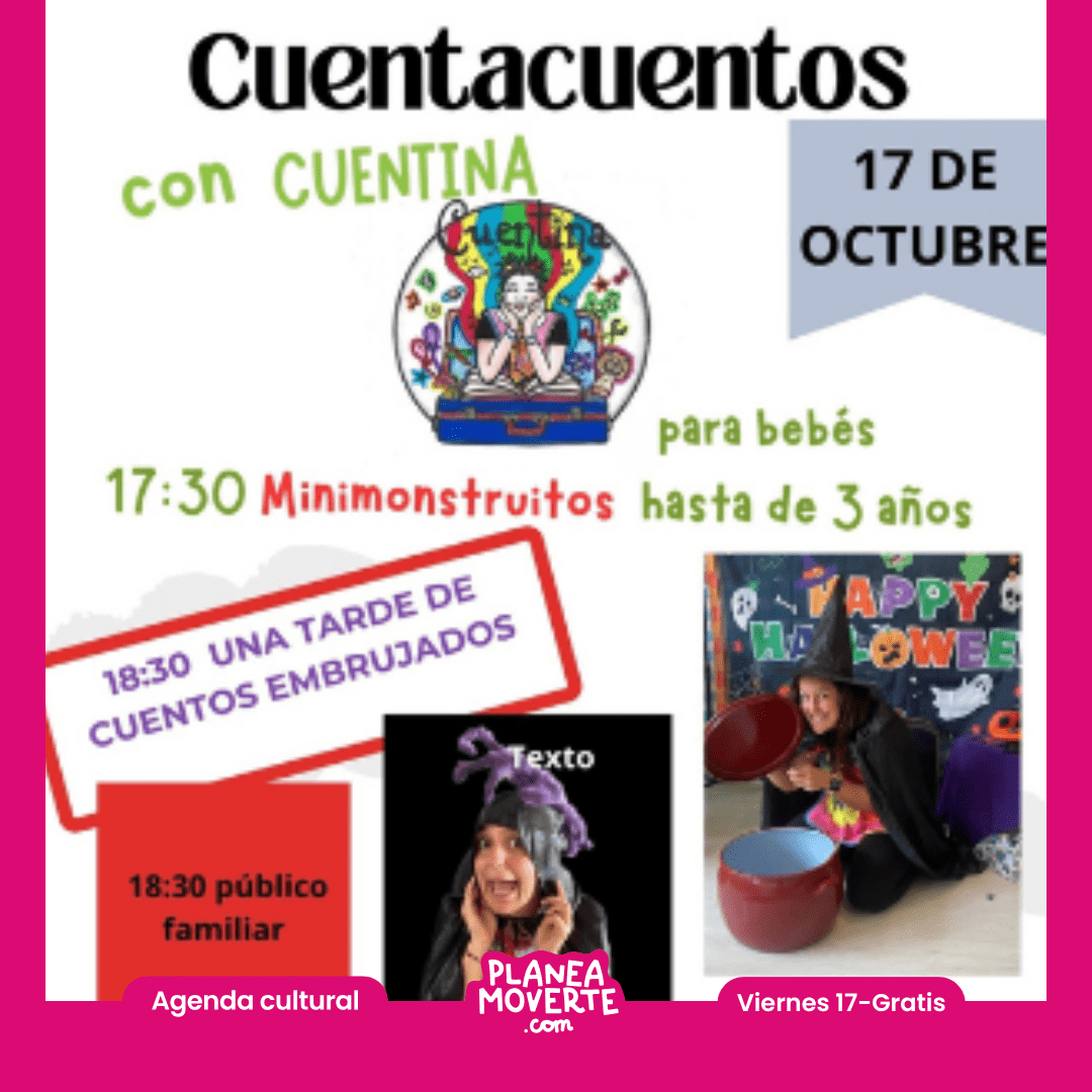 Planes este fin de semana con niños en alicanteSerá a cargo de Cuentina, quien nos divertirá con unas sesiones de temática de Halloween.  A las 17:30 h: Cuentacuentos para bebés de hasta 3 años "Mini Monstruitos" – En esta sesión, los bebés conocerán a simpáticos fantasmitas, brujitas curiosas y calabazas risueñas  con cuentos y canciones, pasaremos una tarde de miedo.