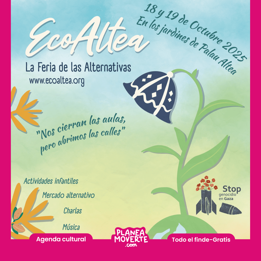 Eco Altea, feria de productos naturales y actividades para toda la familia del 18 al 19 de octubreVuelve Eco Altea. Nos hace muy felices poder celebrar de nuevo la feria y disfrutar de cada momento y actividad. Es un gusto poder ofreceros conferencias, talleres, actividades infantiles, espectáculos, puestos de artesanía, deliciosa alimentación ¡y mucho más. Podéis consultar toda la programación aquí