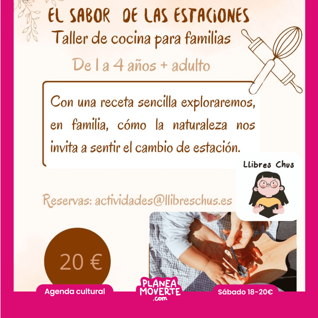 Precio: 20 euros niñx+adulto. Es necesario inscripción previa en nuestro correo actividades@llibreschus.es o llamando al 965650208