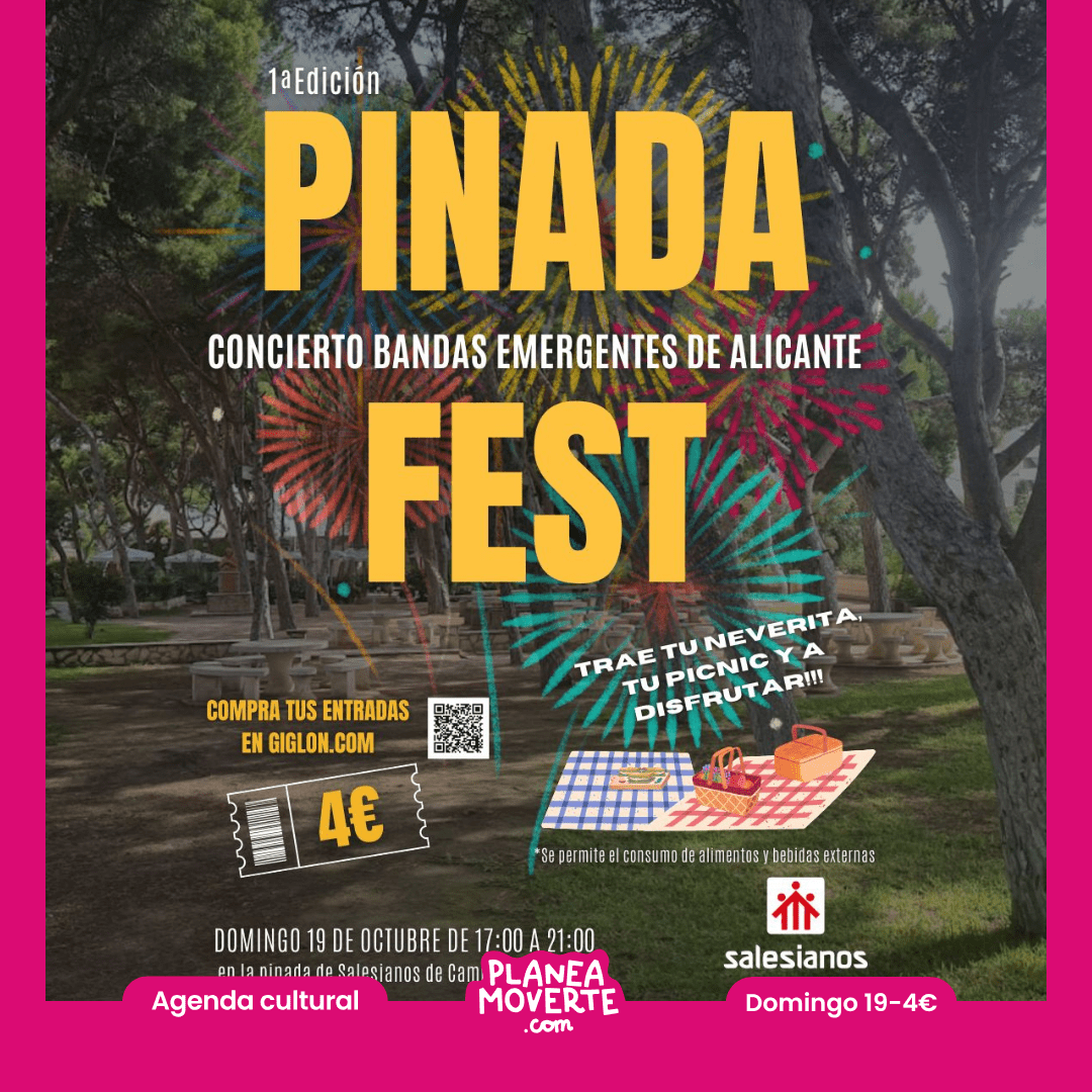 Pinada Fest, planes para adolescentes y pre adolescentes en alicante¡La 1ª Edición de PINADA FEST está a la vuelta de la esquina! ¿Te mola la música en vivo? ¡El próximo domingo 19 de octubre no puedes faltar! Desde las 17h hasta las 21h, Salesianos El Campello se convierte en el centro del talento joven de Alicante. ¡Bandas emergentes, música increíble y mucha energía!