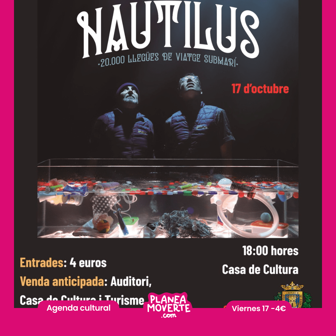Planes con niños en Castalla este fin de semanaEl capitán Nemo aprecia el mar más que a su propia vida. Vive a bordo del Nautilus, un submarino secreto que recorre los océanos de todo el mundo, lejos de todo y de todos. Pero desde hace un tiempo, el capitán observa que los bancos de coral se han convertido en montañas de basura, los peces en bolsas de plástico, y las praderas de posidonia en vertederos acuáticos. La vida marina está en peligro y él se ha propuesto evitarlo, pero no puede hacerlo solo. Por eso recluta al profesor Aronax, a quien llevará a un viaje de 20.000 leguas submarinas para mostrarle los secretos de ese mundo fascinante amenazado por la contaminación humana.