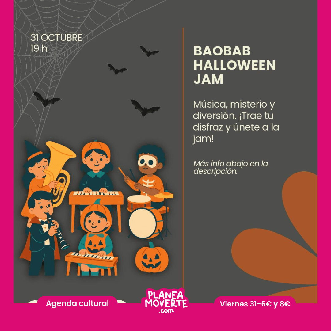 Baobab halloween jam planes especiales de halloween en san vicente del rapeig con niñosEl 31 de octubre haremos un concierto + fiesta de disfraces. Los peques pueden traer sus instrumentos y formaremos una gran banda juntos.