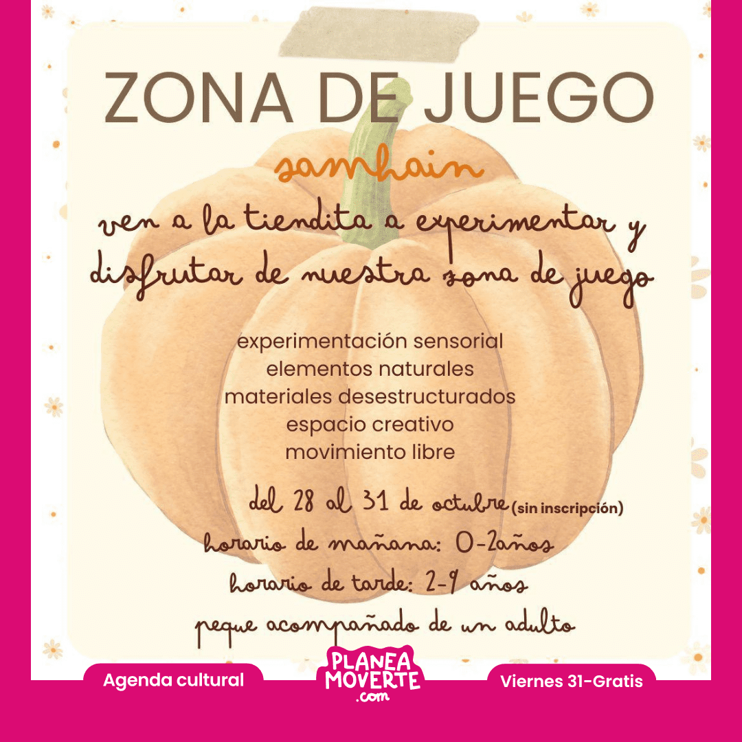 zona de juego en minitribu especial halloween para bebés y niñosVen a la tiendita y experiementa jugar con nuestra zona de juego  del 28 al 31 de octubre. Los peques podrán disfrutar de una zona de juego libre con experimentación sensorial, materiales naturales y creativos. Podréis leer el origen de la fiesta de Halloween, y ver cómo nos conecta con la época del año en la que estamos, periodo de menos luz, de cosecha, de recogimiento.