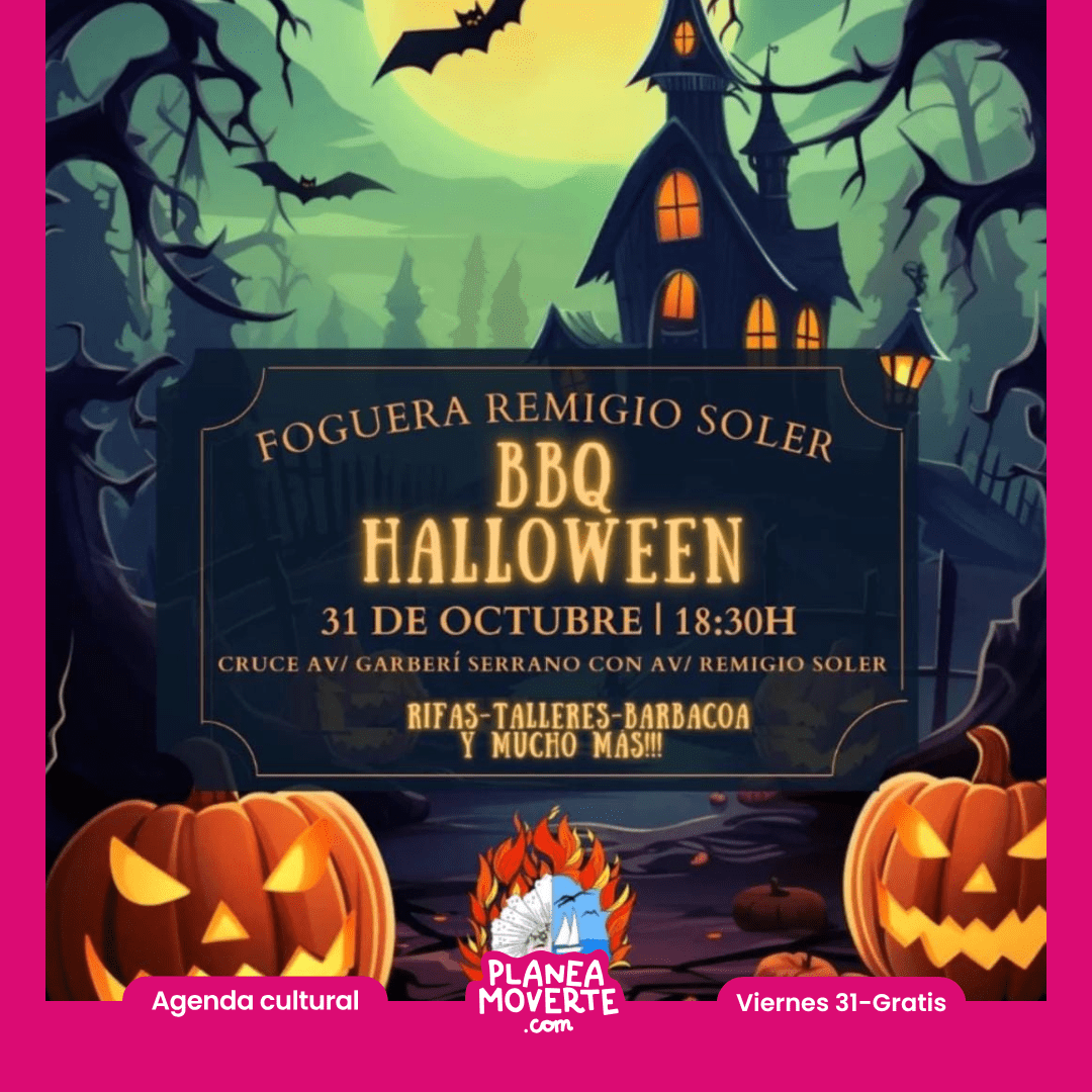 Planes de halloween en pau 5 2025¡Noche de Barbacoa & Fiesta de Halloween en el PAU 5!  La Hoguera Remigio Soler te invita a disfrutar de una tarde mágica y terroríficamente divertida este 31 de octubre a las 18:30h.  Barbacoa deliciosa, Música y buen ambiente, Rifas con premios increíbles, Talleres para todas las edades, Fiesta de disfraces con premio al mejor disfraz ¡Y muchas sorpresas más!
