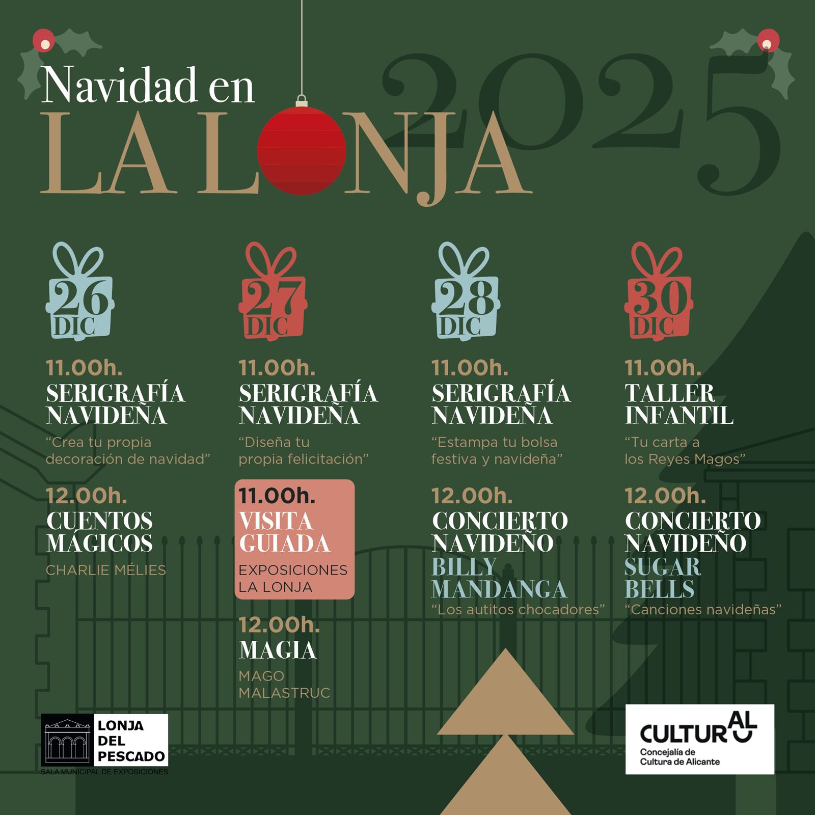 Horario: Del viernes 26 al martes 30 de diciembre. 11 a 13:00 horas y de 17 a 19:00 horas