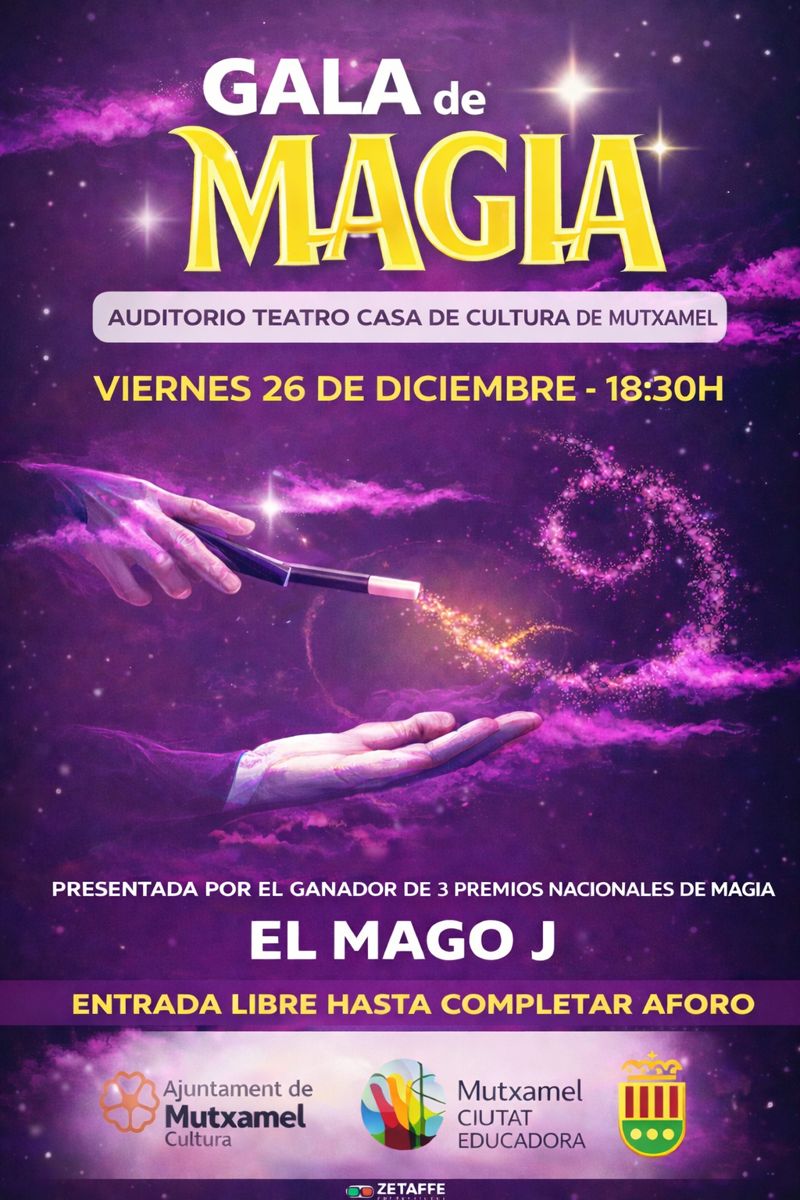 Este viernes, 26 de diciembre, déjate sorprender por una espectacular Gala de Magia. La gala estará presentada por El Mago J, ganador de 3 Premios Nacionales de Magia, en un espectáculo pensado para disfrutar en familia.