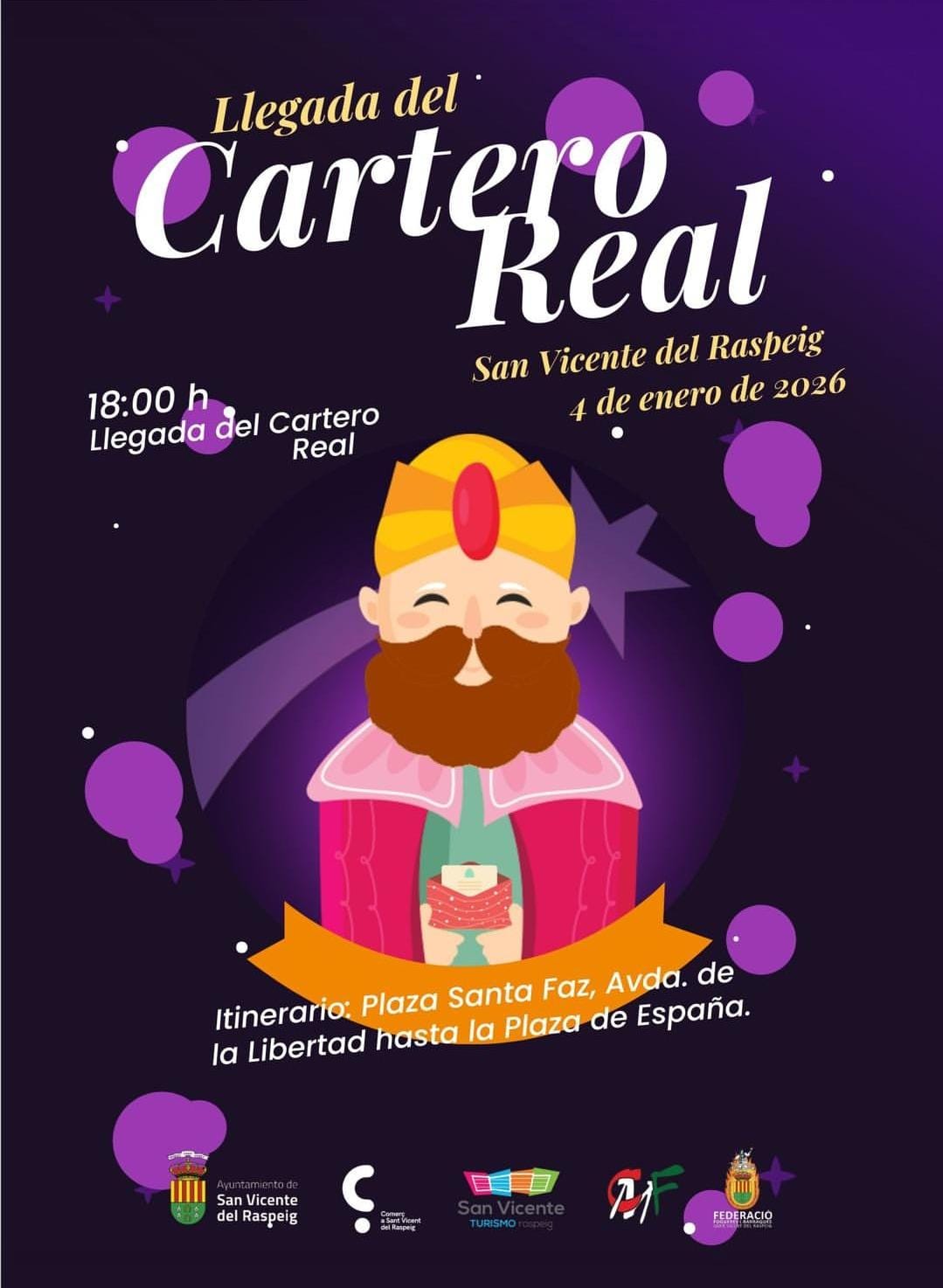 El próximo 3 de enero, a las 18:30 h, el Cartero Real recorrerá nuestras calles desde la Plaza Miguel Hernández hasta el Ayuntamiento, recogiendo las cartas de todos los niños y niñas que quieran entregarle sus deseos para Sus Majestades los Reyes Magos.