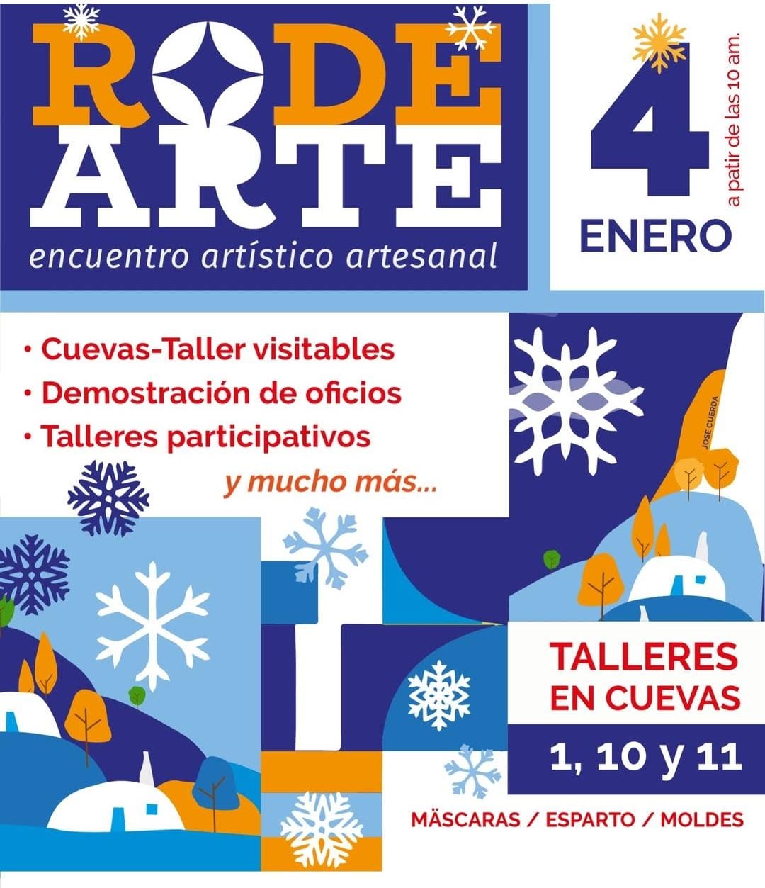 El día 4 de Enero tenemos otra cita con RODEARTE, un encuentro Cultural en el que podrás disfrutar del Arte, Artesanía y música. También se realizarán talleres para niños y comprar tus regalos de Reyes Magos. Un día Fantástico y lleno de emociones. ¡ Os esperamos! Talleres en las cuevas 1, 10 y 11Precio: Entrada gratuita