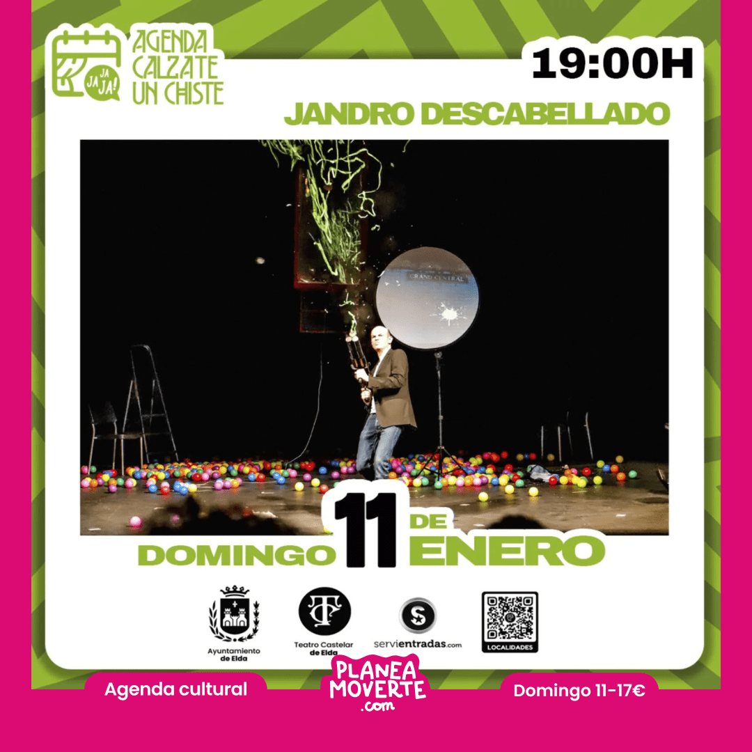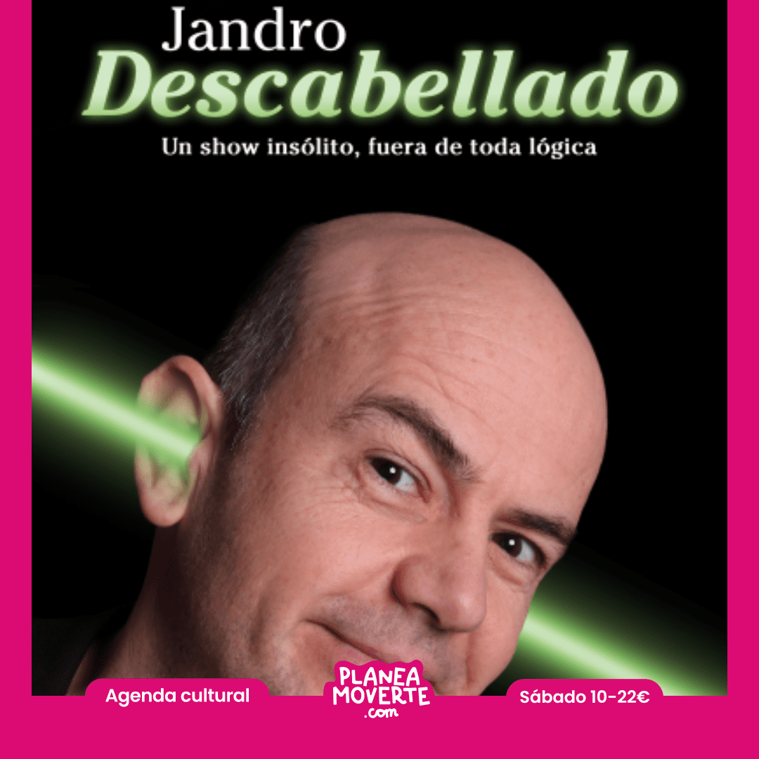 "¿Qué tienen en común Tom Cruise, Will Smith, Jennifer Lawrence, Denzel Washington, Russell Crowe, Tom Hanks, Jessica Chastain, Ryan Reynolds y Hugh Jackman?Todos han sido ilusionados y sorprendidos por Jandro en televisión. Ahora tú puedes vivir esa misma experiencia en directo. DESCABELLADO es el espectáculo más personal, delirante y original de Jandro. Un show de magia cómica donde todo es posible… excepto dejar de reír y alucinar. Magias nunca vistas en televisión. Sin trucos de cámara. Sin compinches. Y sin pelo en la cabeza. Solo imaginación, humor inteligente y efectos imposibles que desafían la lógica.