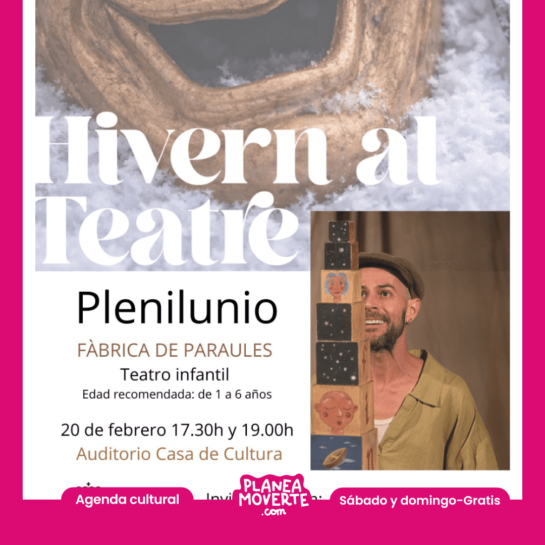 hivern al teatre plenilunio. Planes con bebés este fin de semanaImagina que llegas a este mundo arropado por todas las palabras que tus padres te cantaron durante 9 lunas. Imagina que la luna llena te devuelve el reflejo de cada caricia rimada para ti. Adivina, adivinanza del derecho y del revés… ¿adónde se va la luna cuando no se deja ver? Plenilunio es un juego de palabras que se cantan, se cuentan, se riman y se miman. Una experiencia poética y sensorial pensada para los más pequeños de la casa. Edad recomendada: de 1 a 6 años