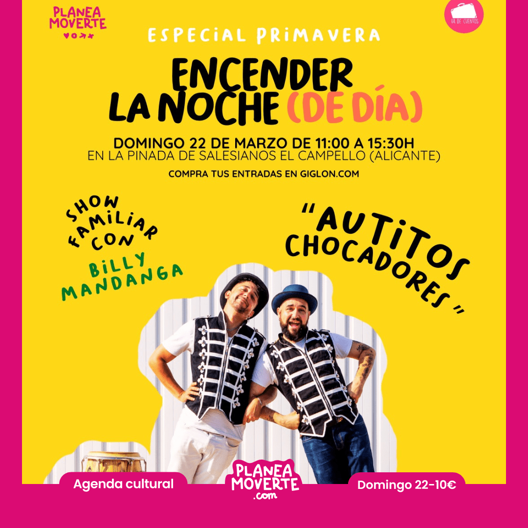 encender la noche de día los autitos chocadoresFamilias, ¡volvemos a disfrutar de Encender la noche (esta vez a plena luz del sol)! Llega Encender la Noche (de día): especial PRIMAVERA. Una mañana mágica para dar la bienvenida a esta nueva estación con la mejor música, juegos y propuestas para compartir en comunidad. En esta ocasión nos acompaña:Los Autitos Chocadores es un espectáculo familiar de música, circo y teatro pensado para disfrutar juntas personas pequeñas y grandes. Un show lleno de baile, humor y fiesta, recomendado para público de 0 a 176 años, donde la participación, la risa y la emoción son protagonistas. Vente con tu pic nic y vamos a disfrutar de un super día!
