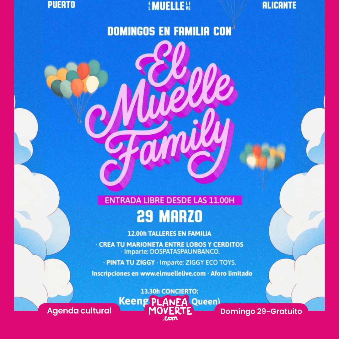 el muelle family planes con niños en alicanteUn plan ideal de domingo para disfrutar en familia: actividades, talleres, mercado artesano, zona gastro, música en directo 13.30h Concierto KEENG Queen Tribute