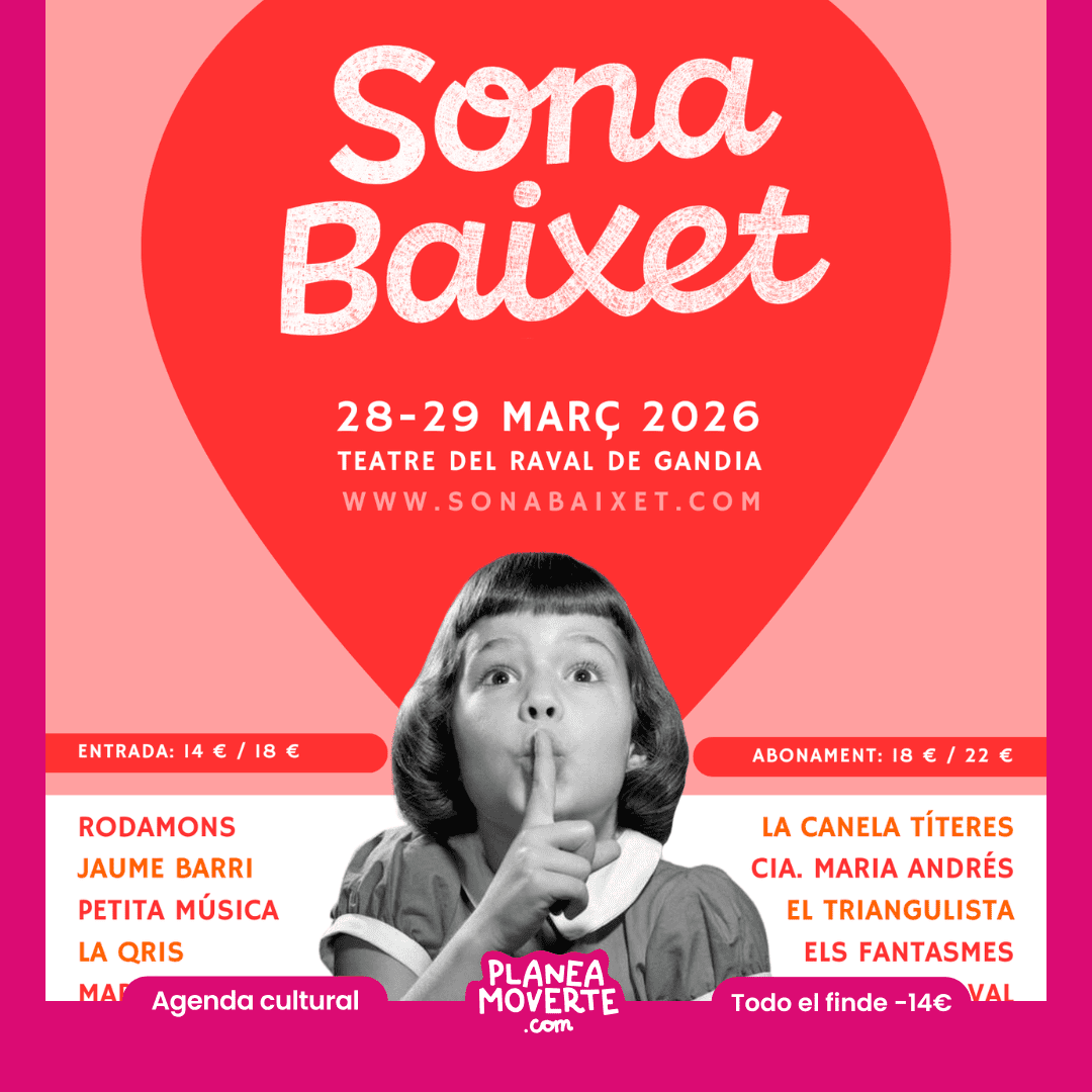 Sona Baixet, planes con niños en gandíaEl sábado y el domingo hay planazo en Gandía! Sona Baixent es una iniciativa de *LaCasaCalba que nació en 2015 con el objetivo de ofrecer una programación cultural diversa, principalmente musical, para peques y para compartir en familia. Super programación que se repite sábado y domingo para que podáis verlo todo!!!!  Podéis ver toda la programación aquí.