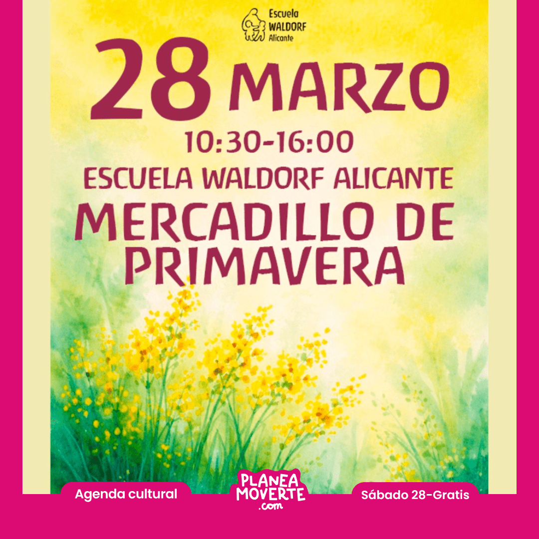 Mercadillo de primavera waldorf alicante. Planes con niños este fin de semanaEl día 28 de Marzo a las 10:30 de la mañana tenemos una cita en la Escuela Waldorf de Alicante con nuestro tradicional mercadillo de la primavera, en la que están invitados tanto socios como no socios, para disfrutar de un estupendo día en familia. Podrás conocer nuestra escuela, pasear por sus jardines, acudir a las charlas con las maestras para resolver dudas sobre la pedagogía y un montón de actividades más que nos ofrece esta jornada para convertirse en un plan familiar perfecto.