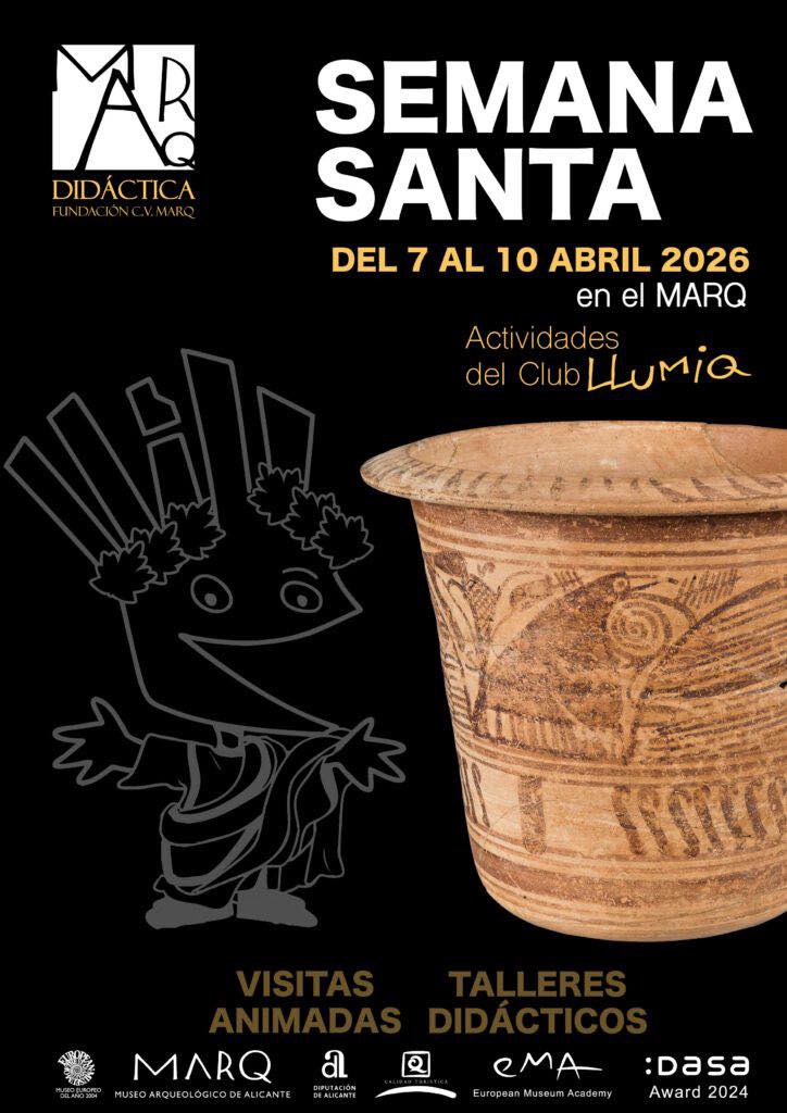 Planes semana santa MARQ. Alicante con niñosVisita a la sala de prehistoria y taller de kalathos. Los participantes decorarán un kalathos en miniatura replicando las técnicas y simbología de la Contestania ibérica. Podrán diferenciar diferentes formas, usos y estilos.Un año más seguimos con el programa de actividades para las vacaciones escolares. Esta Semana Santa de 2026 no te puedes perder las visitas guiadas por la exposición permanente del museo y talleres didácticos relacionados con la temática trabajada en cada una de las jornadas.  Orientado a niños y niñas de 6 a 12 años