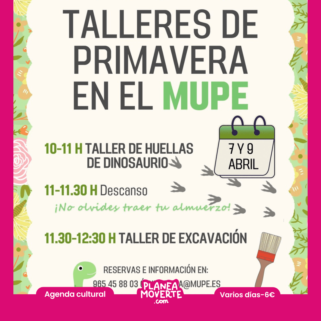 Talleres de primavera en el MUPE. Planes con niños del 7 al 11 de abril¡Llegan los talleres de primavera al Museo Paleontológico de Elche (MUPE)!