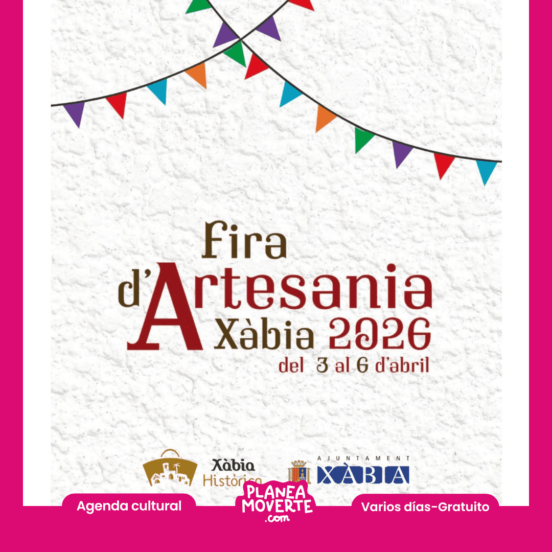 Feria de artesanía en Xabia. Planes semana santa jávea 2026Llega la 41ª Fira d’Artesania del 3 al 6 de abril en el casco histórico de Xàbia, una de las citas más destacadas de la Semana Santa en la comarca. Con 75 puestos de artesanía, el evento reunirá oficios tradicionales como cerámica, cuero, madera, textil o joyería. Durante cuatro días habrá música en directo, espectáculos, animación, talleres y actividades para todos los públicos. También se instalará la Fireta de productos de proximidad con alimentos de km 0 como verduras, miel, embutidos, aceite o vino. Una feria que une tradición, cultura y participación en el corazón de Xàbia. ¡Te esperamos! Consulta la programación aquí.