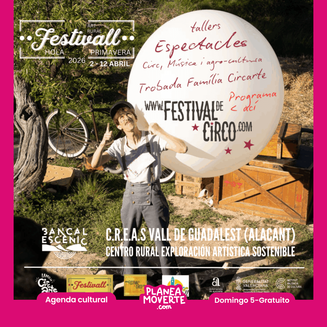 Festival de primavera circarte. Planes con niños en alicante provincia en semana santaLlega la primavera… y con ella vuelve el circo en plena naturaleza  Festivall de Primavera 2026 es mucho más que un festival: es un encuentro, una celebración y una experiencia única en la Vall de Guadalest donde el arte, la comunidad y el entorno se fusionan.  Este día podrás disfrutar en el podrás disfrutar en el Bancal Escènic un día de: